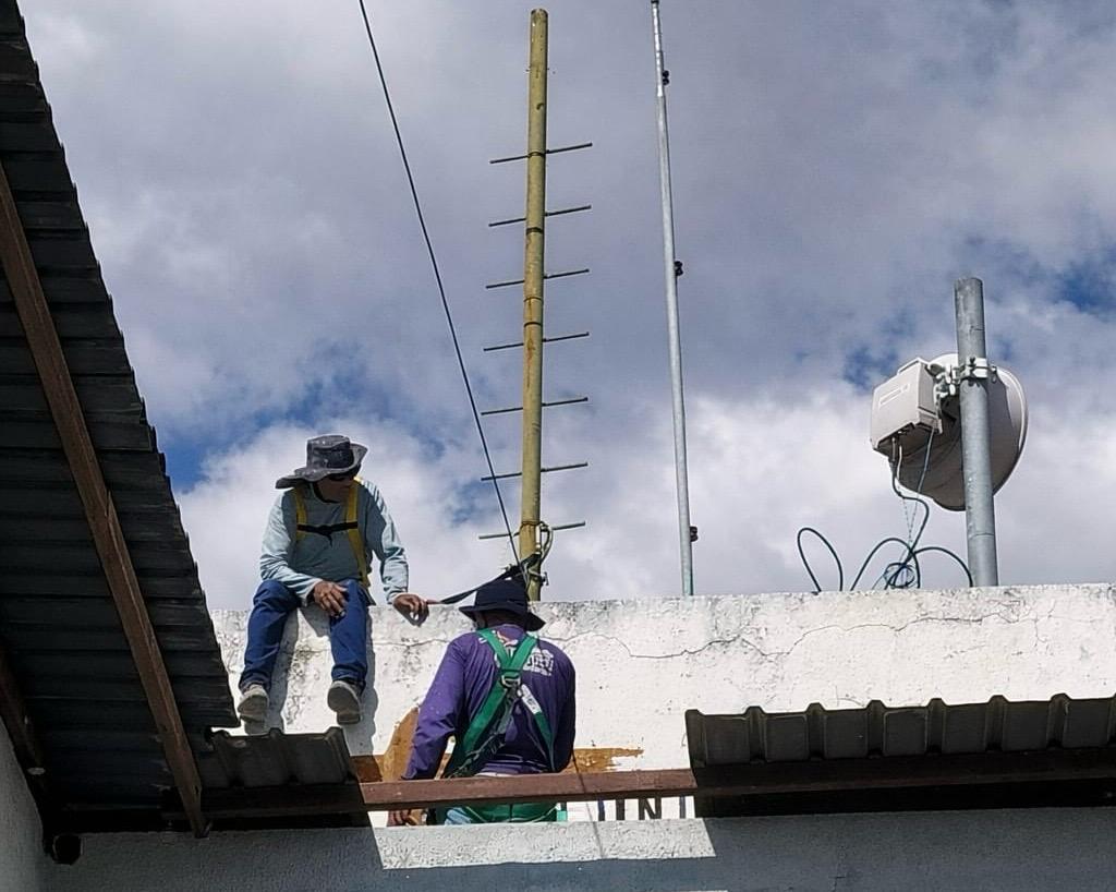 Durante a ação, foi destacado que o uso do cinto de segurança e de escadas adequadas para o acesso aos prédios mais altos é indispensável para a realização das atividades com segurança.